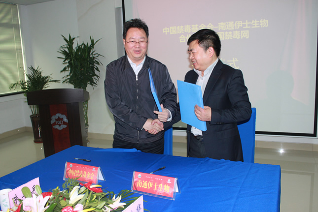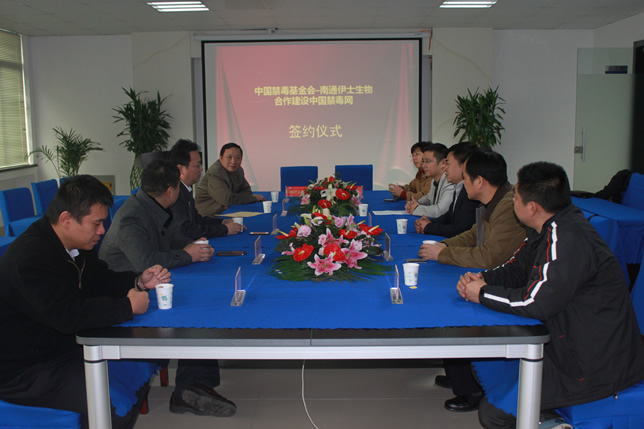 2013年12月7日上午,南通市伊士生物技術(shù)有限責(zé)任公司在伊士生物研究院會議室舉行了“中國禁毒基金會-南通伊士生物合作建設(shè)中國禁毒網(wǎng)簽約儀式”。中國禁毒基金會秘書長李憲輝先生,江蘇省公安廳禁毒總隊副總隊長陳紅淦先生,省公安廳和市公安局相關(guān)領(lǐng)導(dǎo)共7人出席了簽約儀式。
