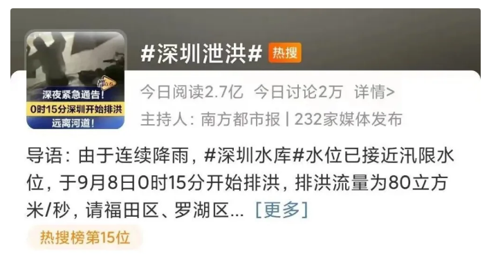 5日-9日,臺(tái)風(fēng)“海葵”先后兩次登陸福建、廣東。受其影響,南方多地出現(xiàn)特大暴雨,福建省、廣東省氣象臺(tái)多次發(fā)布“暴雨預(yù)警一級(jí)”。福州、廈門、漳州、深圳、廣州、佛山等城市內(nèi)澇嚴(yán)重,部分城市雨水齊腰,短時(shí)間強(qiáng)降雨超過(guò)100毫米,深圳降雨量更是打破1953年以來(lái)的降雨極值,地鐵灌水,深圳泄洪多次登上各大平臺(tái)的熱搜第一。